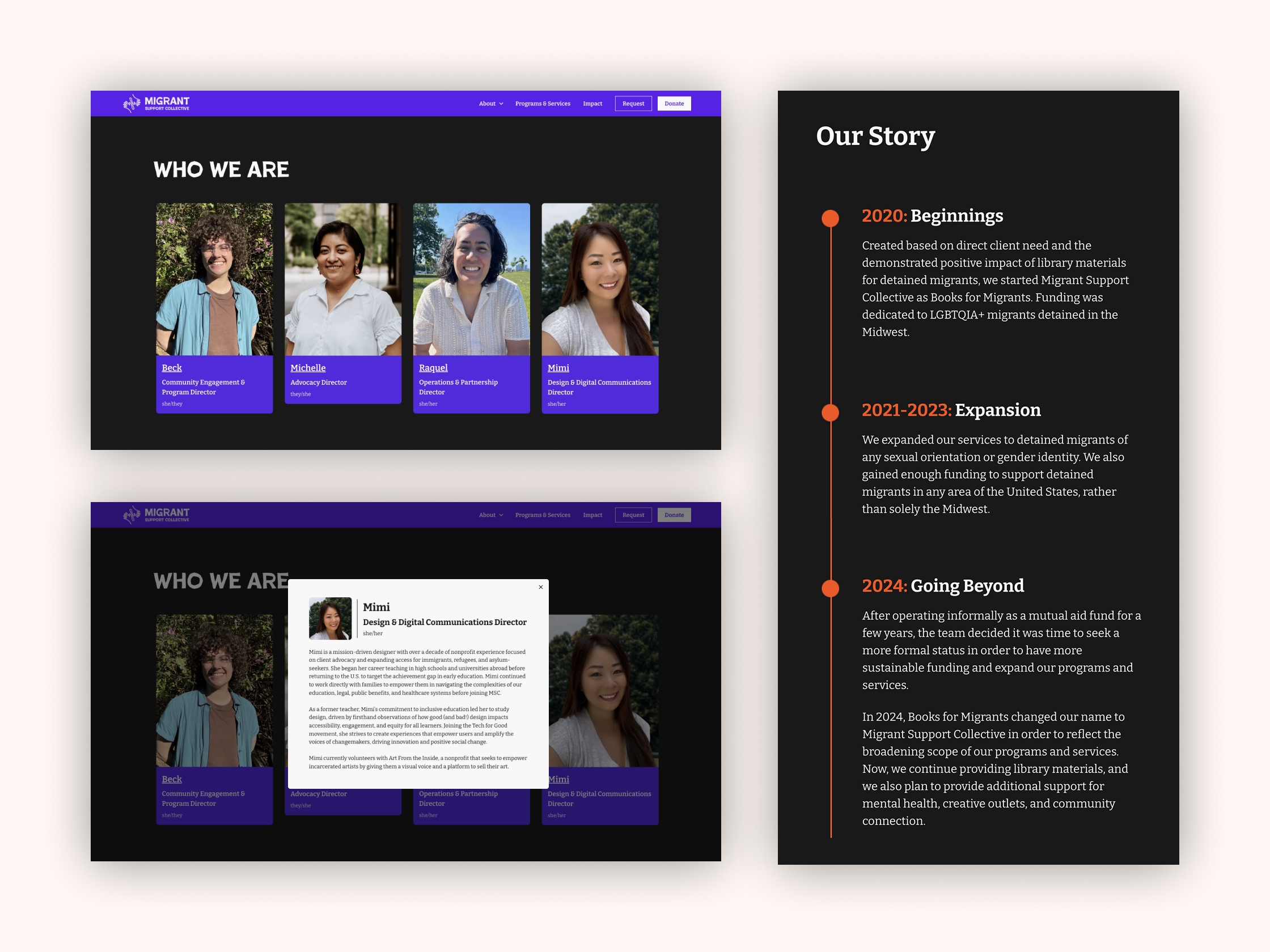There is no one I would have rather had redesign our website than Mimi. She always asked for feedback and incorporated it into her work, so that the resulting design was truly a great reflection of what our organization’s values are. With a lens focused on inclusivity and accessibility, she accomplished creating a user-centered website that meets the needs of our diverse audience, which includes migrants, social workers, legal aid workers, grant makers, and donors. Mimi is an excellent designer for any social impact oriented organization. She is not only extremely dedicated and talented, but a pleasure to work with!
